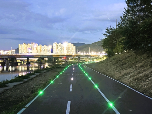 장성군, 황룡강변 자전거도로에 ‘활주로형 LED 표지병’ 설치…야간 안전 강화